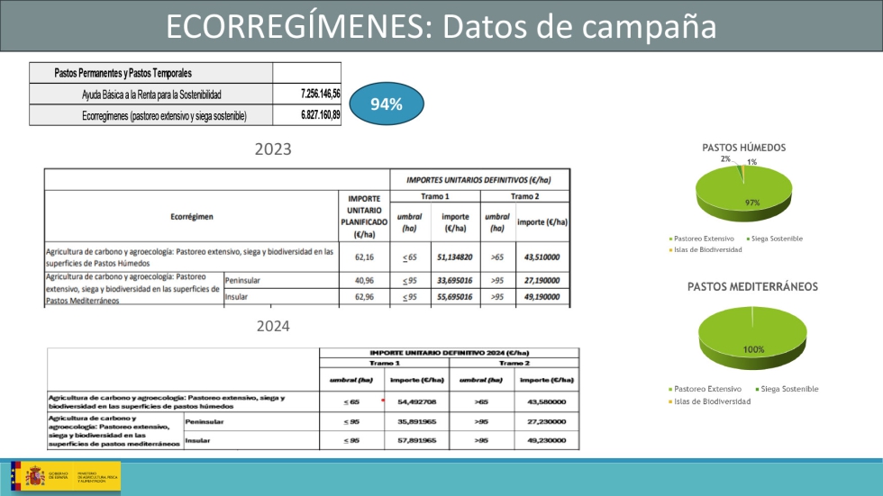 Estos importes son inferiores a los que se habían planificado originalmente, porque en un primer momento se pensó que no iban a entrar tantas hectáreas como han entrado de pastos en estos ecorregímenes. Ha habido ciertas flexibilizaciones para que más ganaderos se pudieran acoger y eso ha provocado que bajen los importes.