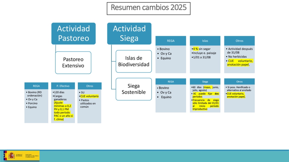 En cuanto a la actividad de siega, en la práctica de islas de biodiversidad, se ha reducido el % de superficie que se debe mantener sin segar del 7% al 4%, con el objetivo de que más ganaderos se puedan acoger a esta práctica.