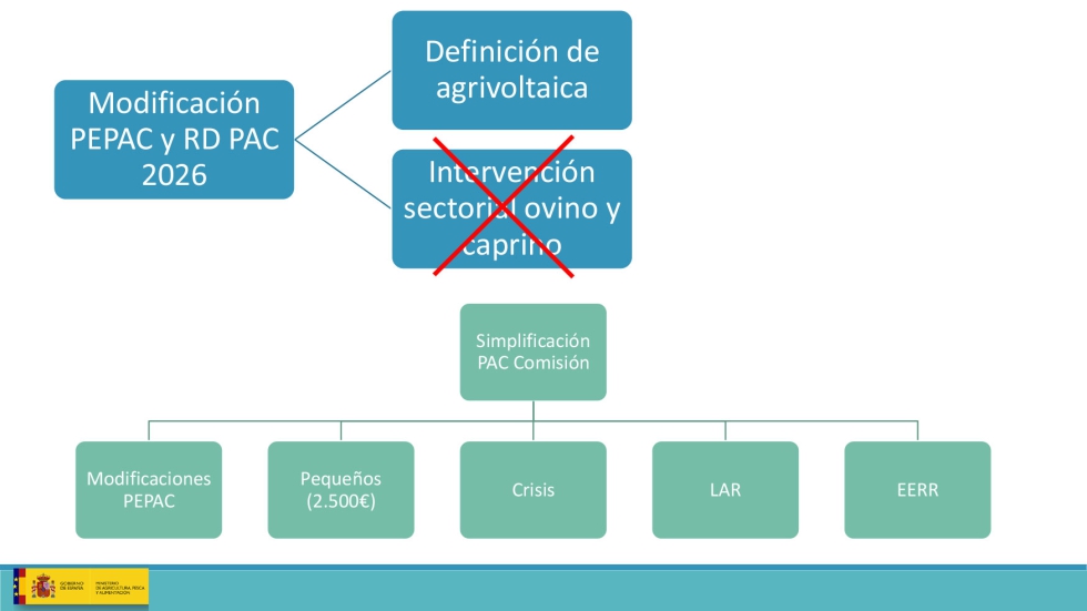 Una de las novedades que se va a incluir en el nuevo real decreto de la campaña 2026 es el concepto de agrivoltaica y su compatibilidad con las ayudas de la PAC. Se va a diferenciar el concepto de agrivoltaica del de fotovoltaica o instalaciones de placas solares a la hora de considerar la superficie elegible o no. Esto será objeto de un desarrollo posterior en el que se detallaran los requisitos y definiciones concretas que se apliquen. En cualquier caso, en un primer momento se limitará este concepto a las superficies de tierras de cultivo, no incluyendo las superficies de pastos hasta que se desarrolle un sistema efectivo de control sobre las mismas que garantice que no hay riesgo de pérdida de superficie agraria.