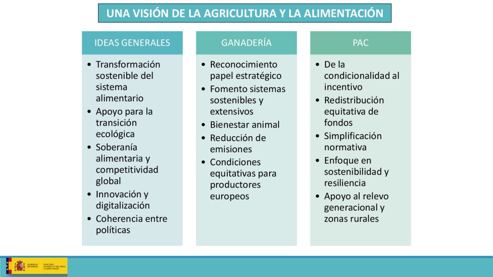 Por otro lado, la visión también recoge aspectos referidos a la PAC. Principalmente recoge la idea de no penalizar por el incumplimiento de requisitos sino incentivar para que se cumplan los requisitos que queremos hacia esta transformación sostenible y, sobre todo, intentando que haya una simplificación normativa mucho mayor de la que tenemos en la actualidad.