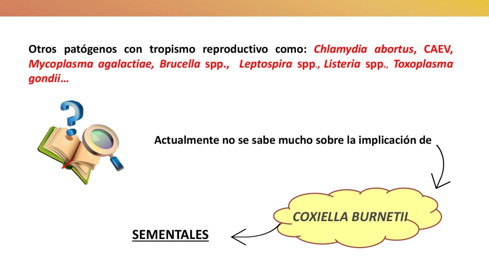 Existe poca información sobre el impacto que tiene Coxiella burnetii en los sementales ovinos y caprinos, por lo que sigue siendo una incógnita el papel que tienen estos sementales como reservorios de la enfermedad y en cuanto al impacto que tienen o que generan a nivel reproductivo en los mismos. Existen diversos patógenos que también tienen un tropismo reproductivo, como pueden ser Chlamydia abortus, CAEV, Mycoplasma agalactiae, Brucella, Leptospira, Listeria, Toxoplasma gondii, pero no hay información sobre la implicación que tiene Coxiella burnetii en los sementales.