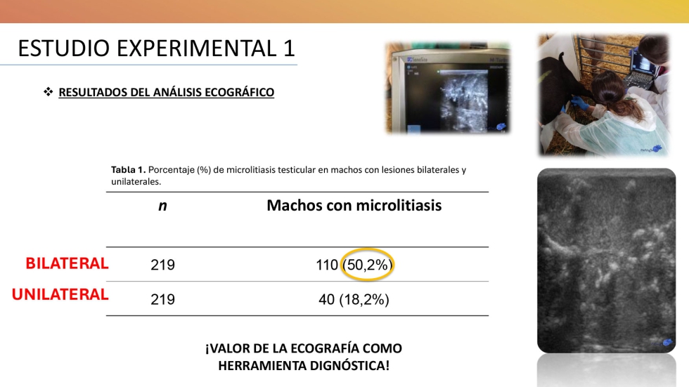 En este sentido, el Grupo ProVaginBIO ha llevado a cabo un estudio en el que se evalúa la presencia de Coxiella burnetii en sementales caprinos, así como las posibles implicaciones reproductivas en una granja comercial de 219 machos, en el cual se llevó a cabo un análisis serológico y un análisis ecográfico testicular. Se observó que un 57% de animales de los machos fueron seropositivos a Coxiella burnetii, lo que indica que es evidente la circulación de este patógeno en esta explotación, además con un alto porcentaje de machos infectados en el mismo rebaño. Y en cuanto a los resultados del análisis ecográfico, se observó que casi el 70% de los machos presentaban lesiones en el paréntema testicular con microlitiasis. Además, casi el 50% de esta explotación presentaba esas lesiones a nivel bilateral, lo que indica el valor que tiene este análisis ecográfico como herramienta diagnóstica no invasiva a la hora de detectar sementales que podrían estar siendo infértiles en las explotaciones.