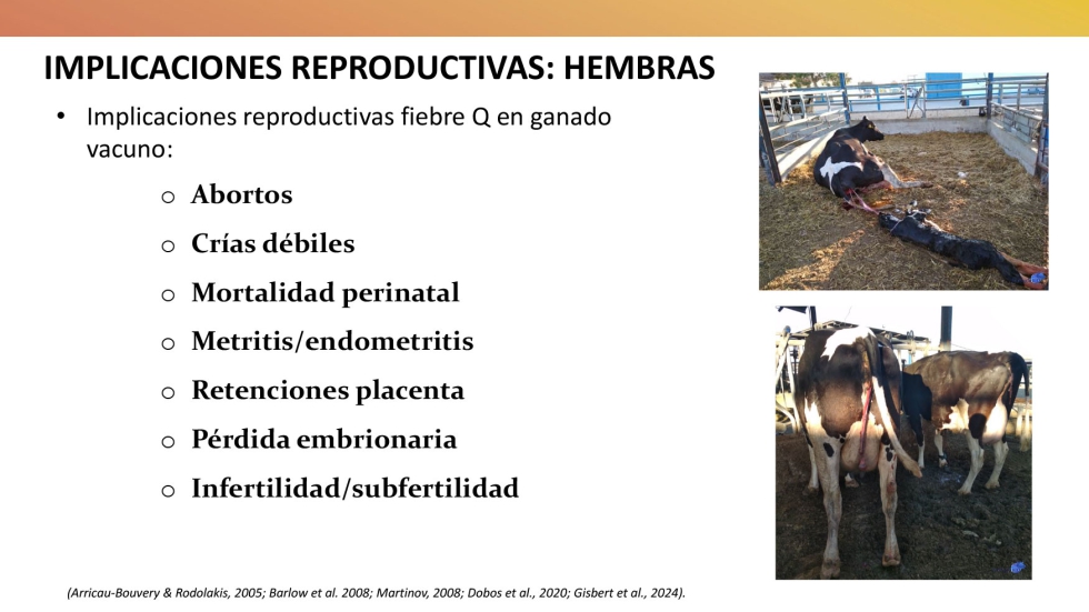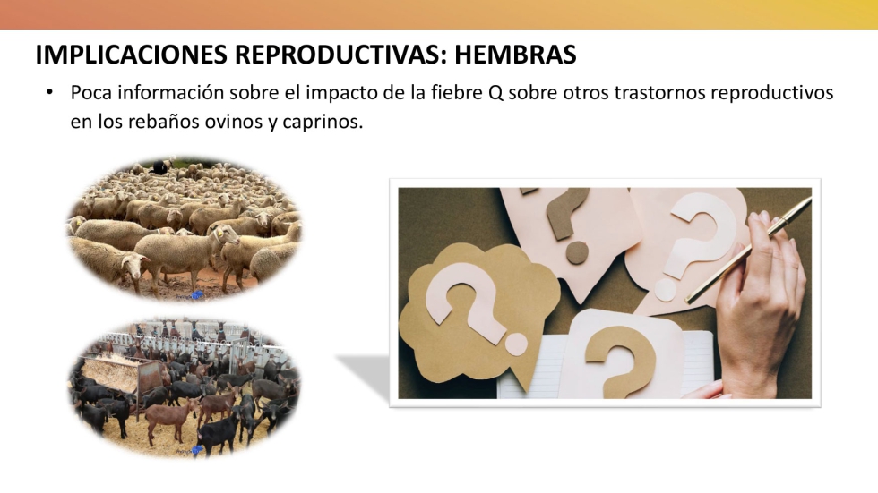 En el caso de la infertilidad de las hembras, las sintomatologías más comunes suelen ser los abortos durante las últimas semanas de gestación, además de ver nacimiento de crías débiles o mortinatos. En el ganado vacuno es bien conocida la implicación que tiene en diferentes problemas reproductivos, como pueden ser, además del aborto, crías débiles, mortalidad perinatal, metritis, endometritis, retenciones de placenta, pérdida embrionaria, infertilidad o subfertilidad… pero en el ganado ovino y caprino existe muy poca información sobre la implicación que tiene la fiebre Q en trastornos reproductivos.