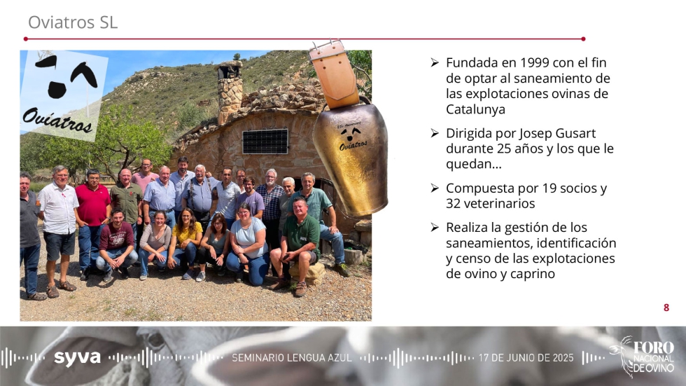 Formo parte de una empresa que se llama Oviatros, fundada en 1999 por un grupo de veterinarios de ADS que nos dedicábamos al ovino y con la gerencia de Josep Gusart. Hasta ese año, las campañas de saneamiento se efectuaban por ADS. La Generalitat decidió cambiar el sistema y pasar a una licitación, por lo que se fundó Oviatros SL para poder acudir a la licitación. En la actualidad, somos prácticamente la única empresa que trabaja en toda Cataluña.