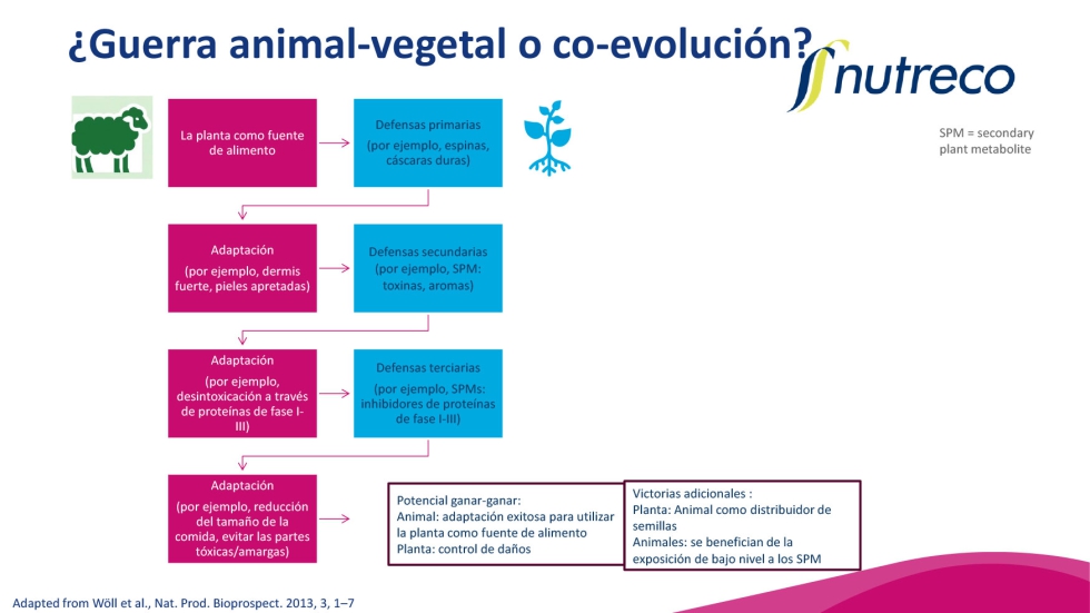 Realmente, las plantas y los animales han ido evolucionando juntos para sobrevivir en el medio. A medida que el animal se iba intentando comer la planta, la planta desarrollaba ciertas defensas para que el animal no se la comiera por completo. Y entonces el animal, a su vez, desarrollaba defensas para poder comerse esa planta. Y la planta desarrollaba los metabólicos secundarios que hacían que el animal en principio no se la comiera entera o se la comiera más despacio. Pero también tenían un beneficio en el animal y es que el uso de plantas medicinales en la alimentación animal y en alimentación humana está ampliamente estudiado y demostrado. Pero el enfoque siempre ha sido más o menos el mismo: utilizar un fitoactivo o una combinación de dos fitoactivos dentro de la misma categoría para intentar reemplazar a los antibióticos.