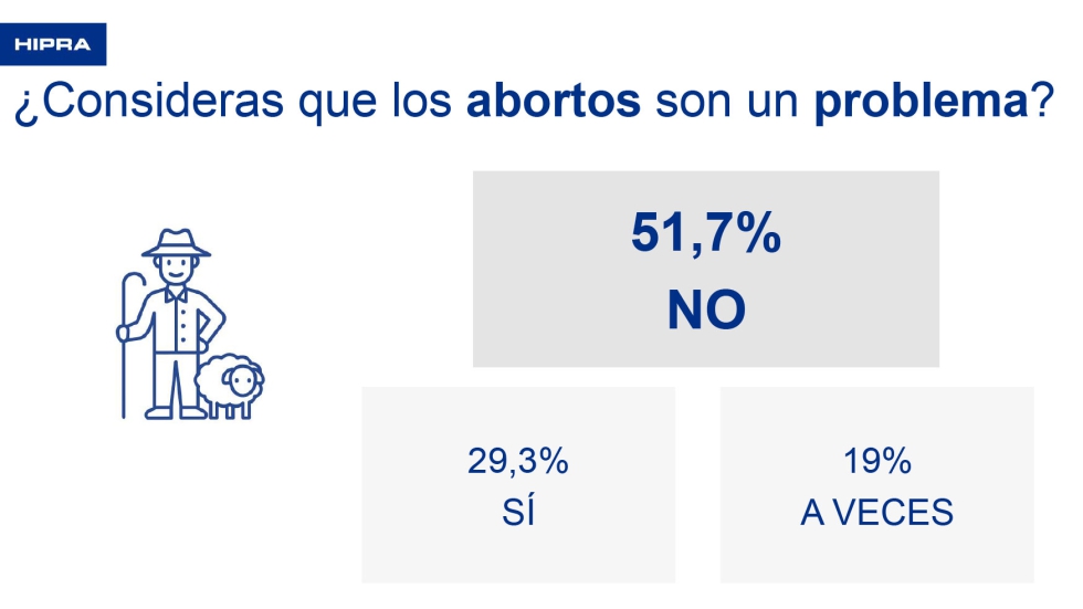 Al ganadero se le preguntaba si consideraba que los abortos eran un problema en su explotación. Un 51,7% respondió que no, un 29,3% decía que sí y un 19% respondió que en ocasiones. De los ganaderos que no lo consideraban un problema, la mitad de los ganaderos sí vacunaban, pero la otra mitad no lo hacía. En ocasiones, el ganadero no mantiene la vacunación en el tiempo porque no lo considera un problema continuo, debido al ciclo de infección.