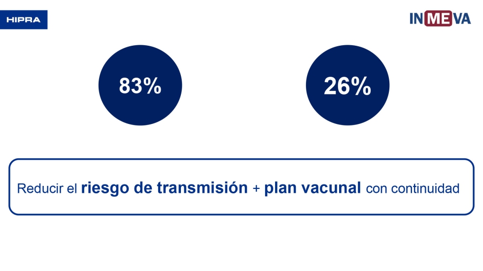 HIPRA lanzó al mercado hace seis años INMEVA. Es una vacuna segura, eficaz, se puede poner en cualquier etapa de los animales y permite mantener la inmunidad de rebaño. Es la primera vacuna inactivada en el mundo que tiene demostrada la disminución de la excreción. Todo esto lo consigue gracias a la concentración antigénica que lleva, al proceso de inactivación de la vacuna y al adyuvante que contiene.