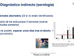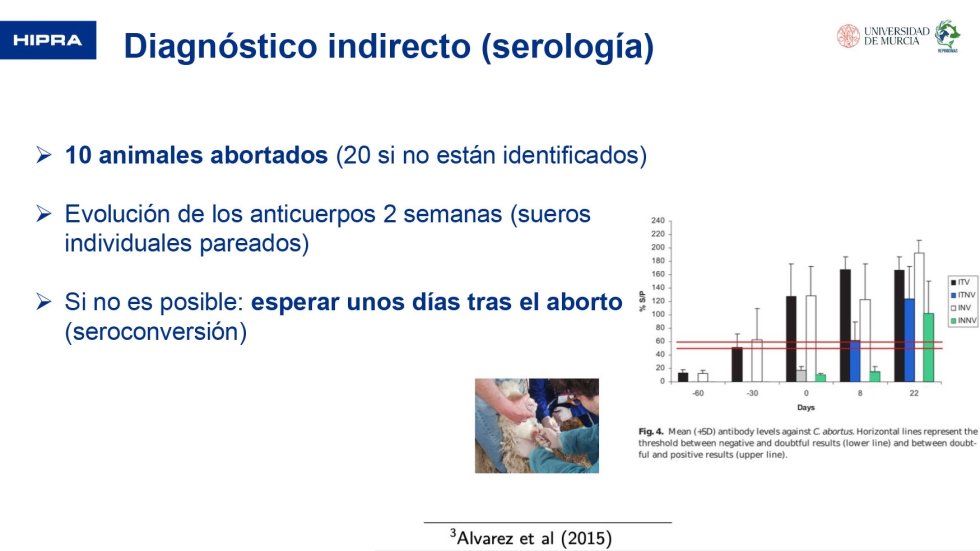 Por lo que respecta al diagnóstico indirecto, se hace a partir del suero de los animales. Lo ideal es observar la evolución de los anticuerpos durante dos semanas, con sueros individuales pareados. Si no es posible por cuestión de manejo, se deben tomar muestras de un mínimo de diez animales que lleven más de 2 semanas abortados, para dar tiempo a la seroconversión.