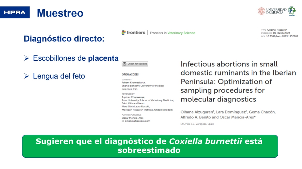 Un estudio de 2023 de Exopol a través de 390 muestras, de escobillones vaginales y lengua del feto, comprobaron que había una correlación muy alta de la técnica de qPCR y las técnicas convencionales con un número importante de patógenos, incluidos clamidia. La única excepción era Coxiella burnetii, que necesitaba cq por debajo de 32. Eso sugiere que el diagnóstico de Coxiella burnetii está sobreestimado.
