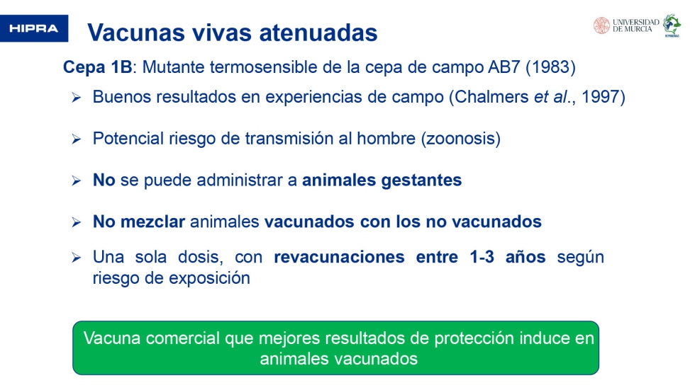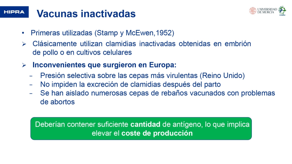 Existen vacunas atenuadas, inactivadas, subcelulares (proteínas de C. abortus específicas) y vacunas de ADN (inoculación de plasmido de ADN que codifique síntesis de proteínas).